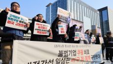 미국 대사관 앞에서 열린 '미국 정·재계 규탄 기자회견'