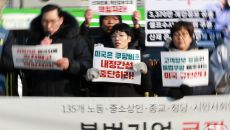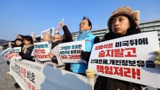 미 대사관 앞에서 미국 정·재계 규탄 피켓든 시민단체들
