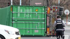 (대구=뉴스1) 공정식 기자 = 23일 오후 2시 6분쯤 대구 수성구 범안삼거리에서 25톤 트레일러가 전도되면서 태양광 패널- 2026-01-23 15:52