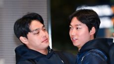 [사진]문동주-엄상백,'화기애애한 출국길'