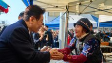 남창옹기종기시장 상인과 인사 나누는 이재명 대통령