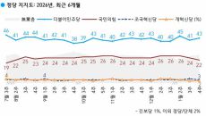 민주당 43%·국민의힘 22%…민주 2%p↑·국힘 2%p↓[한국갤럽]