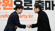 아시아투데이 이병화 기자 = 이준석 개혁신당 대표와 천하람 원내대표가 23일 국회를 찾은 홍익표 청와대 신임 정무수석을 기다리- 2026-01-23 10:19