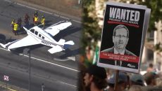 美 경비행기 도로 비상착륙…호주 반이스라엘 시위