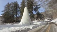 혹한 속 美 공원에 '얼음 화산' 등장…높이 9m까지 자라