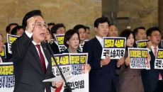 본회의 보이콧 국힘, 與 규탄대회 "입법쿠데타…맞서 싸울것"