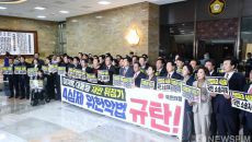 [포토]한복 입은 민주당-규탄 발언 나선 국민의힘
