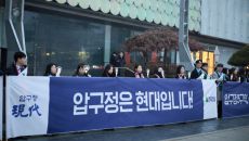 12일 서울 강남구 압구정3구역 일대에서 현대건설 임직원들이 수주 결의 행사를 열고 있다. [사진=현대건설]현대건설이 서울 강- 2026-02-12 15:48