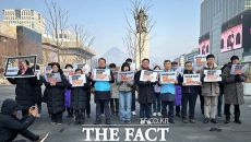 [더팩트 | 김성렬 인턴기자] 이상규 진보당 서울시장 후보와 전국민중행동이 12일 서울 종로구 광화문 이순신 동상 앞에서 기자- 2026-02-12 15:47