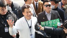경찰 소환 조사 출석하며 환하게 웃는 전한길