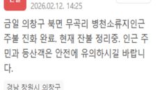 경남 창원 의창구에서 난 산불이 초기 진화됐다. 창원시는 12일 오후 2시 25분께 "금일 의창구 북면 무곡리 병천소류지 인근- 2026-02-12 14:51