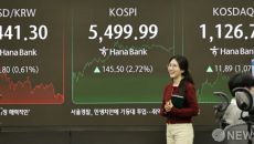 코스피 2.72% 상승 5499...코스닥 1.07% 상승 1126 거래중