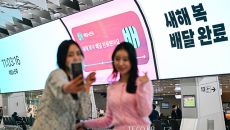 [더팩트ㅣ김포국제공항=남윤호 기자] 12일 오전 서울 강서구 김포국제공항 국내선 청사에서 배달의민족 모델들이 대규모 시보 광고- 2026-02-12 13:30