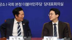 [서울=뉴스핌] 윤창빈 기자 = 정청래 더불어민주당 대표, 박지원 최고위원이 12일 오전 서울 여의도 국회에서 열린 제6기 청- 2026-02-12 11:58