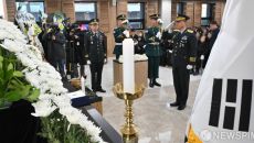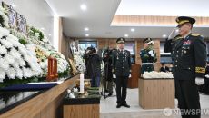 [성남=뉴스핌] 사진공동취재단 = 김규하 육군참모총장이 12일 오전 경기 성남시 국군수도병원 영결식장에서 열린 육군 항공기 사- 2026-02-12 11:25