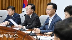 [이용우 기자] (서울=국제뉴스) 송언석 국민의힘 원내대표가 6일 오전 서울 여의도 국회에서 열린 원내대책회의에서 발언하고 있- 2시간전