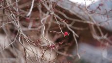 구례 화엄사 홍매화 첫 꽃망울…지난해 보다 16일 이른 개화