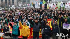 6일 오후 서울 종로구 경복궁 동십자각에서 열린 3·8 세계 여성의 날 전국노동자대회에서 민주노총 조합원들이 구호를 외치고 있- 21시간전