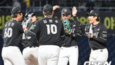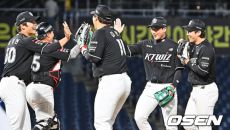 [사진] NC전 4-3 승리 기쁨 나누는 KT 선수들