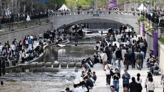 따뜻한 날씨에 붐비는 청계천