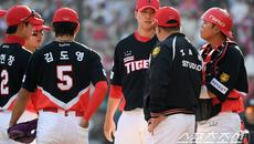 28일 인천 SSG랜더스필드에서 열린 SSG와 KIA의 경기. 9회말 마운드를 직접 찾은 KIA 이범호 감독이 마무리 정해영을- 21시간전