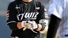 28일 잠실야구장에서 열린 KT와 LG의 개막전. 7회초 KT 이강민이 안타를 치고 기뻐하고 있다. 잠실=허상욱 기자wook@- 21시간전
