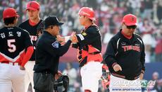28일 인천 SSG랜더스필드에서 열린 SSG와 KIA의 경기. 9회말 마운드를 직접 찾은 KIA 이범호 감독 표정이 어둡다.- 21시간전