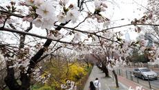 기상청이 지난 29일 서울에 벚꽃이 개화했다고 발표한 가운데 30일 서울 여의도 윤중로벚꽃길을 찾은 시민들이 산책을 하고 있다- 21시간전