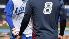 [포토] 이재현 '전준우 선배 잘 지내시죠?'