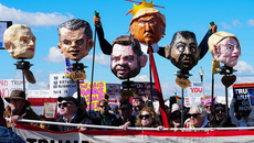 “관세에, 이민자 추방에, 그것도 모자라 전쟁까지…. 노 킹스 시위가 열릴 때마다 분노가 더해지고 있다.” 28일(현지시간)- 2026-03-29 11:49