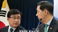 [더팩트ㅣ임영무 기자] 구윤철 부총리 겸 재정경제부 장관(왼쪽)이 26일 오전 서울 종로구 정부서울청사에서 중동 전쟁에 따른- 1시간전