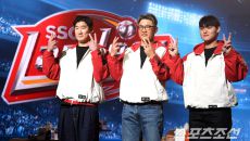 26일 롯데호텔월드에서 열린 KBO리그 미디어데이&팬페스트. 포즈를 취하고 있는 SSG 오태곤, 이숭용 감독, 조병현. 잠실=- 2시간전
