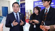 박홍근 신임 기획예산처 장관이 26일 대전 스타트업파크에서 청년 창업·일자리 간담회를 하기에 앞서 취재진의 질문에 답하고 있다- 2026-03-26 16:48