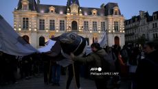 [김현승 기자] (프랑스=국제뉴스) 김현승 기자 = 25일(현지시간) 프랑스 남서부 푸아티에의 시청 앞에 시위대가 모였다. 관- 4시간전