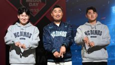 26일 롯데호텔 월드에서 열린 2026 KBO 리그 미디어데이&팬페스트 NC 이호준 감독, 박민우, 김주원이 포즈를 취하고 있- 4시간전