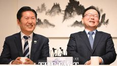 [더팩트ㅣ국회사진기자단] 정청래 더불어민주당 대표(왼쪽)와 김부겸 전 국무총리가 26일 서울 중구 달개비에서 회동하고 있다.- 6시간전