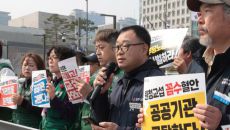[서울=뉴스핌] 이길동 기자 = 전국민주노동조합총연맹(민주노총) 관계자들이 26일 오전 서울 종로구 정부서울청사 앞에서 공공기- 6시간전