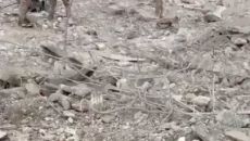 이라크 안바르주 하바니야 군 진료소 인근에서 이라크 보안군이 건물 잔해 사이에 서 있다 / 사진=SNS 캡처 미군이 중동 지역- 7시간전