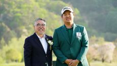 [포토] 이상엽, 김원섭 KPGA 회장로부터 우승자켓