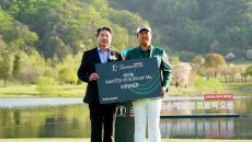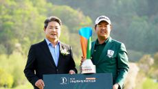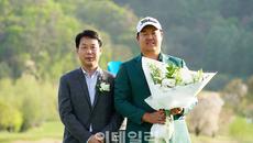 [포토] 이상엽, 김영범 라비에벨 골프앤리조트 대표이사로부터 우승 꽃다발