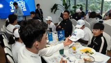 [mhn포토] 우리금융 드림라운드, 김비오 사인 전달