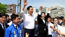 [성남=뉴스핌] 정일구 기자 = 정청래 더불어민주당 대표와 추미애 경기지사 후보, 김병욱 성남시장 후보, 김용 전 민주연구원- 2026-04-19 15:29