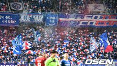 [사진]우산과 컨페티로 응원 펼치는 수원삼성