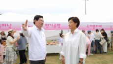 이상일 용인특례시장(왼쪽)이 19일 SERI PAK with 용인에서 열린 북적북적 페스타에 참석해 박세리 감독(오른쪽)과 행- 2026-04-20 16:11