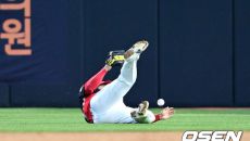 [사진]KIA 우익수 나성범, '타구에 몸 날렸지만'