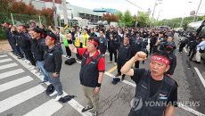 (창원=연합뉴스) 박영민 기자 = 20일 경남 진주시 정촌면 CU 물류센터 앞 집회 현장에서 화물차가 집회 참가자들을 들이받아- 9시간전