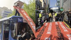 버스 위 올라가 "이동권 보장"…전장연, 출근길 도심 시위