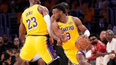 NBA 봄농구 첫 父子 동시 출전 LA 레이커스의 브로니 제임스(오른쪽)가 19일 열린 휴스턴과의 2025∼2026시즌 미국프- 5시간전