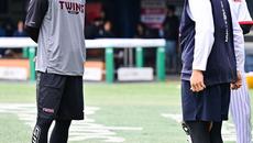 [사진]채은성 군기 잡는 모창민 코치