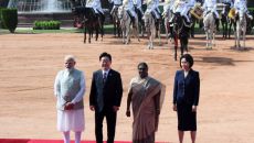 이재명 대통령(왼쪽 두번째)과 김혜경 여사(오른쪽), 드루파티 무르무 인도 대통령(오른쪽 두번째), 나렌드라 모디 총리(왼쪽)- 36분전